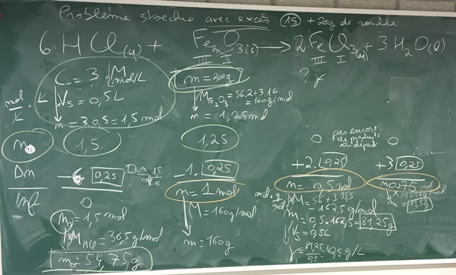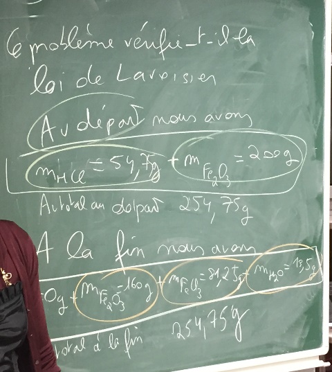 avec vérification de la loi de Lavoisier : Photo du tableau du cours du centième... On fait