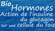 vidéo 9'54" Action de l'insuline ou du glucagon sur la cellule hépatique : récepteur-enzyme, messager secondaire, glycogénogenèse ou glycogénolyse, entrée ou sortie du glucose par une diffusion facilitée par une protéine canal.