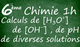 7'38" 3 exercices de calculs des concentration en H3O+, en OH- et du pH de différentes solutions : a) solution 0,06M en HNO3; b) solution 0,0004M en Ca(OH)2 et c) solution de pH11,3 + écran final pdf