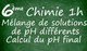 10'34" déc 2016 On mélange 150 mL d'une solution de pH 5,8 avec 250 mL d'une solution de pH 3,8. Quel est le pH de la solution obtenue ? Calcul de la concentration en H3O+ puis du nombre de mole d'H3O+ dans chacune des solutions. Addition des 2 nombres de moles et des 2 volumes de solution. Calcul de la concentration en H3O+ totale et du pH final.