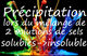 12'32" : Vidéo d'un exemple d'exercice introductif : Lorsqu'on mélange deux solutions limpides contenant chacune un sel soluble : sulfate d'aluminium et nitrate de plomb, on observe une précipitation. Ecriture des équations de mise en solution des sels de départ, et des équations de précipitation : ionique et moléculaire.